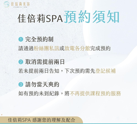 佳倍莉SPA採完全預約制